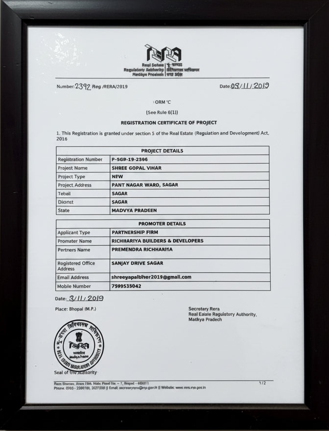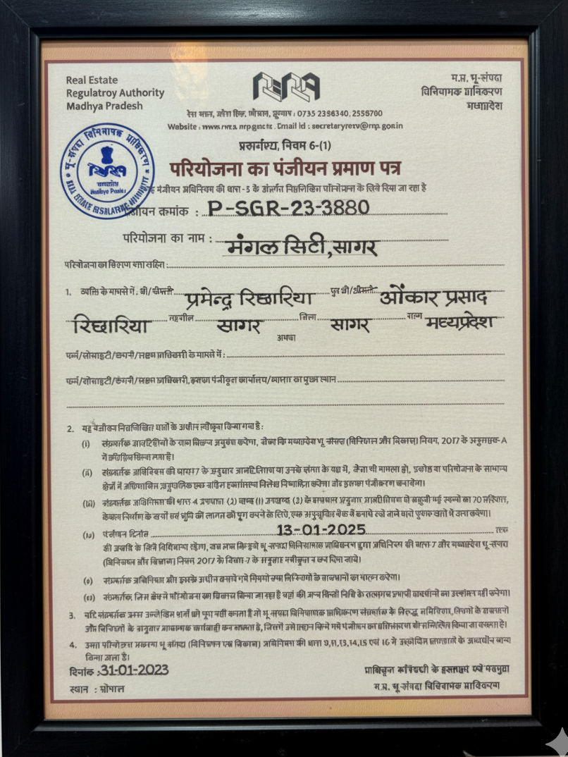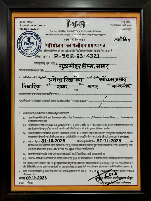 Gulmohar Homes: Richhariya Group is a trailblazer in providing the first TNCP and RERA approved colony located at the foothills of Sagar University in the Pathria Jat area, under the name of Gulmohar Homes. This project was initiated in 2022 and has since gained significant traction. The colony is strategically situated in close proximity to the Central University, New Bus Stand, and several renowned private colleges in Sagar.